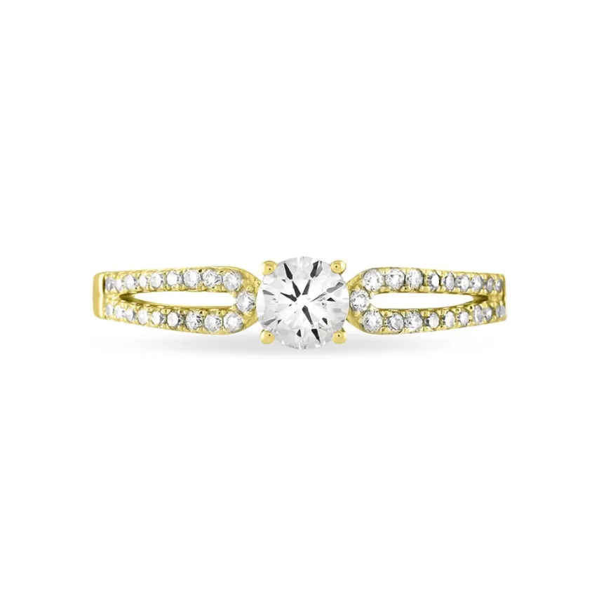 Solitaire Or Jaune 750/1000 Diamant Central 0.50cts Corps De Bague Double Accompagne Diamants