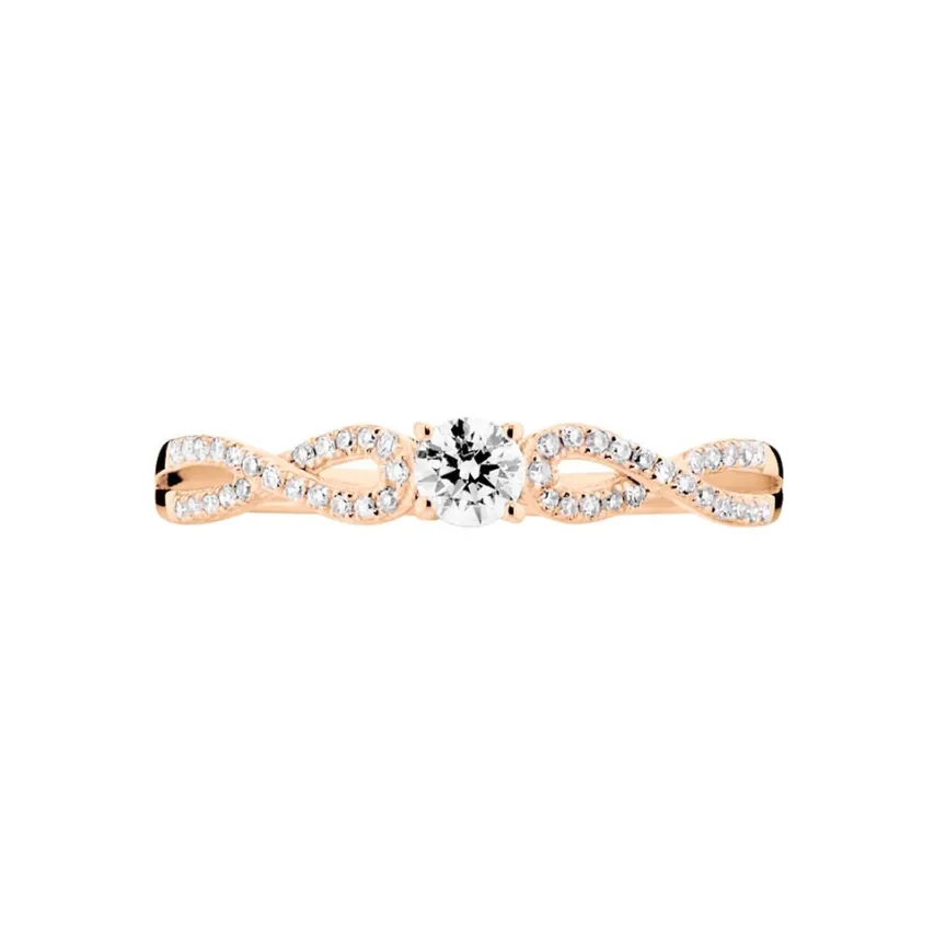 Solitaire Or Rose 375/1000 Diamant Central 0.15cts Accompagne Diamants Corps De Bague Entrelace