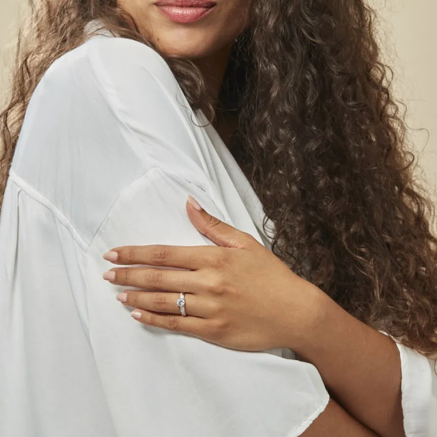 Solitaire Or Blanc 375/1000 Oxyde De Zirconium Central Corps De Bague Accompagne Oxydes De Zirconium