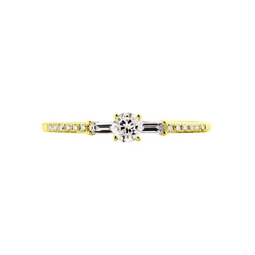 Solitaire Or Jaune 375/1000 Diamant Central 0.15cts Accompagne Diamants Baguettes + Pavage Diamants