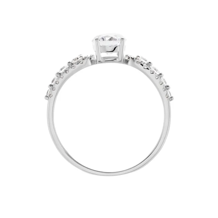 Bague Or Blanc 375/1000 Solitaire Oxyde De Zirconium Central 5.2mm Accompagne Oxydes De Zirconium