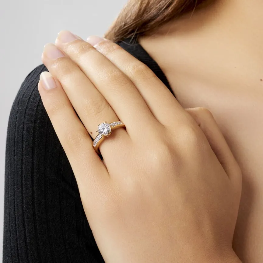 Bague Plaqué Or Jaune Solitaire Oxyde De Zirconium + Oxydes Sur Anneau