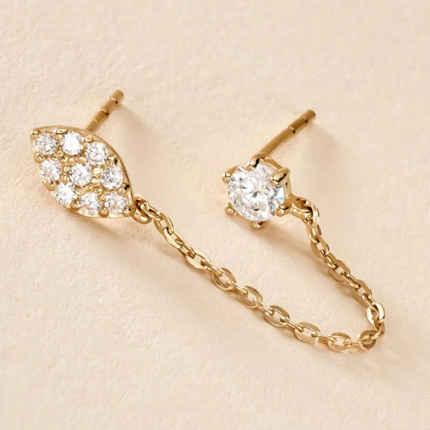 Bijou D’oreille Unitaire Pendante Or Jaune 375/1000 Oxydes De Zirconium Sertis Griffes Et Chaine Maille Forcat 3.5cm