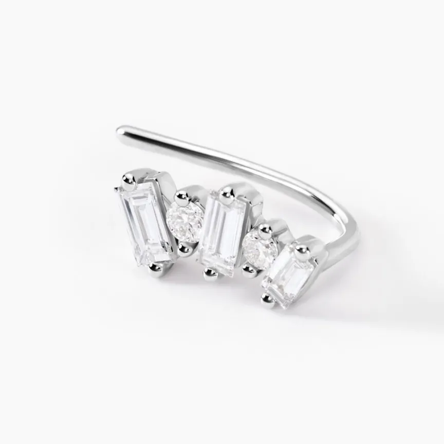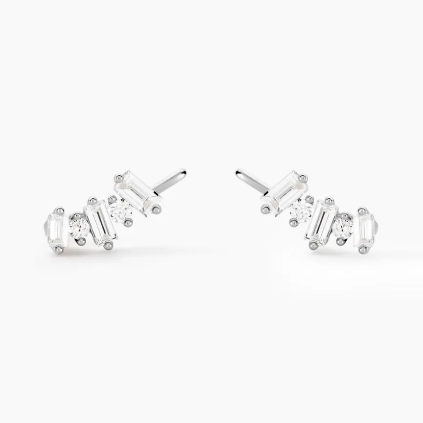Boucles D’oreilles Grimpantes Or Blanc 375/1000 Diamants Synthetiques Baguettes 0.18cts