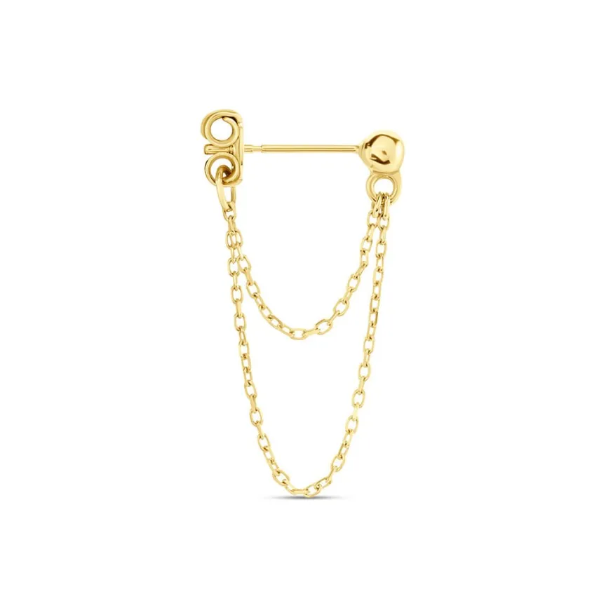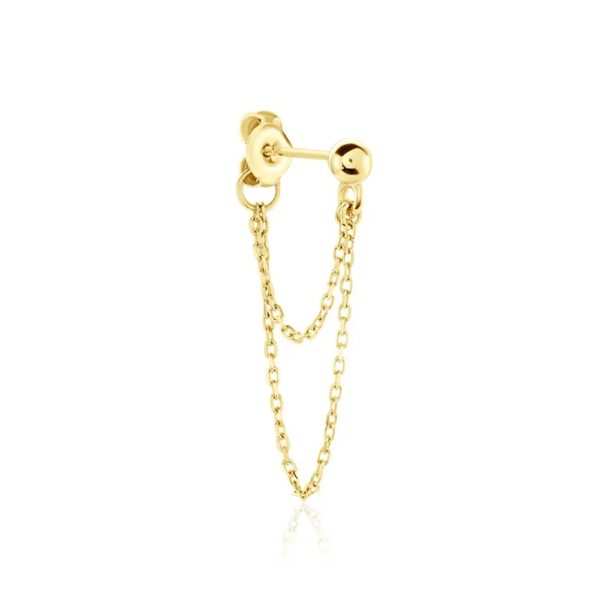 Boucle D’oreille Unitaire Or Jaune 375/1000 Boule Avec Double Chaines Maille Forcat
