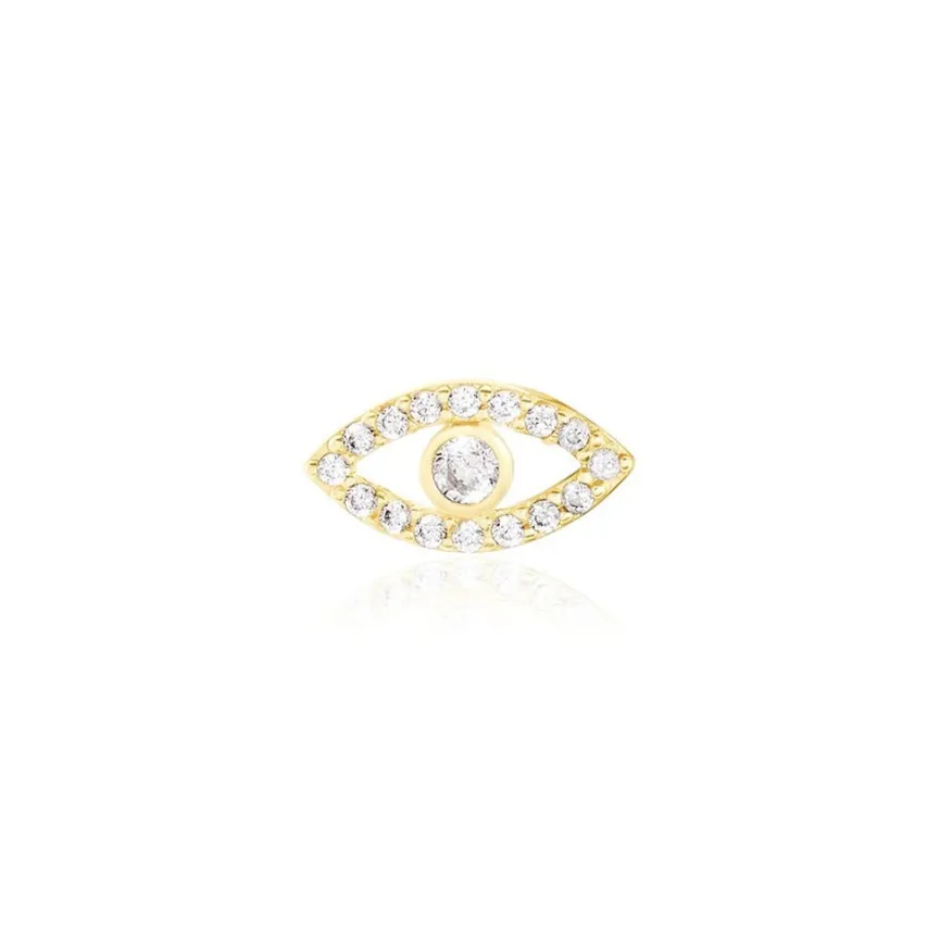 Boucle D’oreille Puce Unitaire Or Jaune 375/1000 Oeil Oxydes De Zirconium