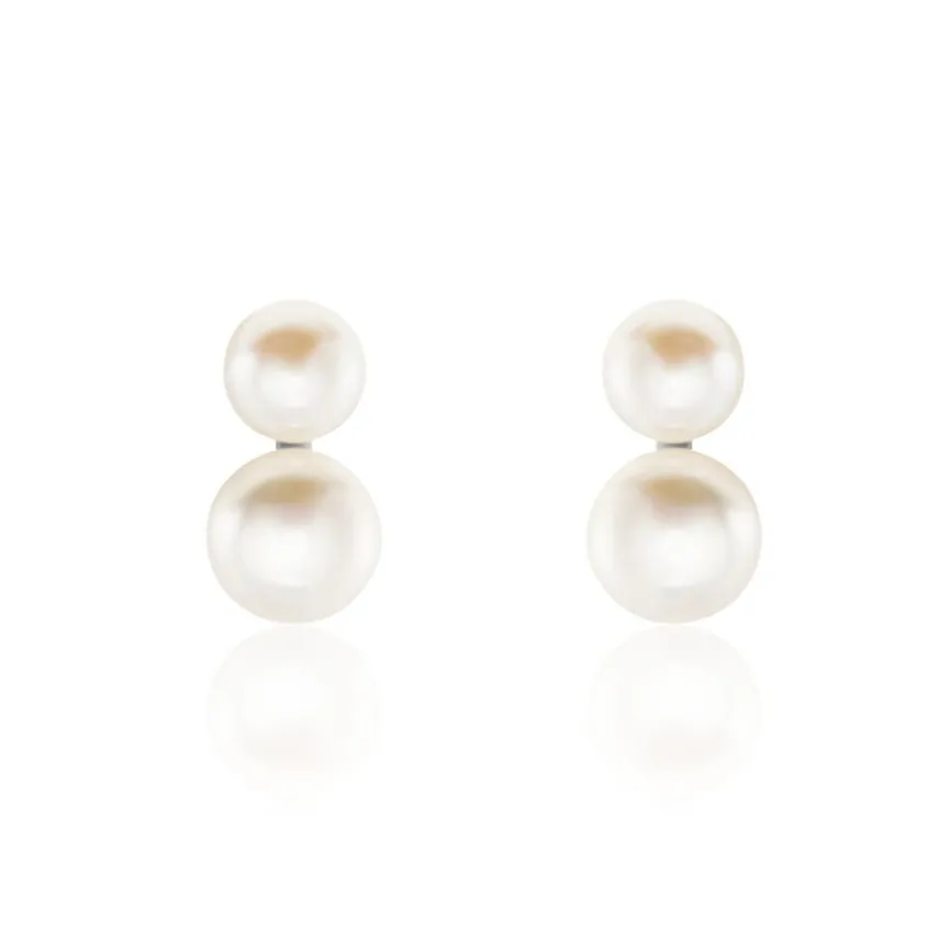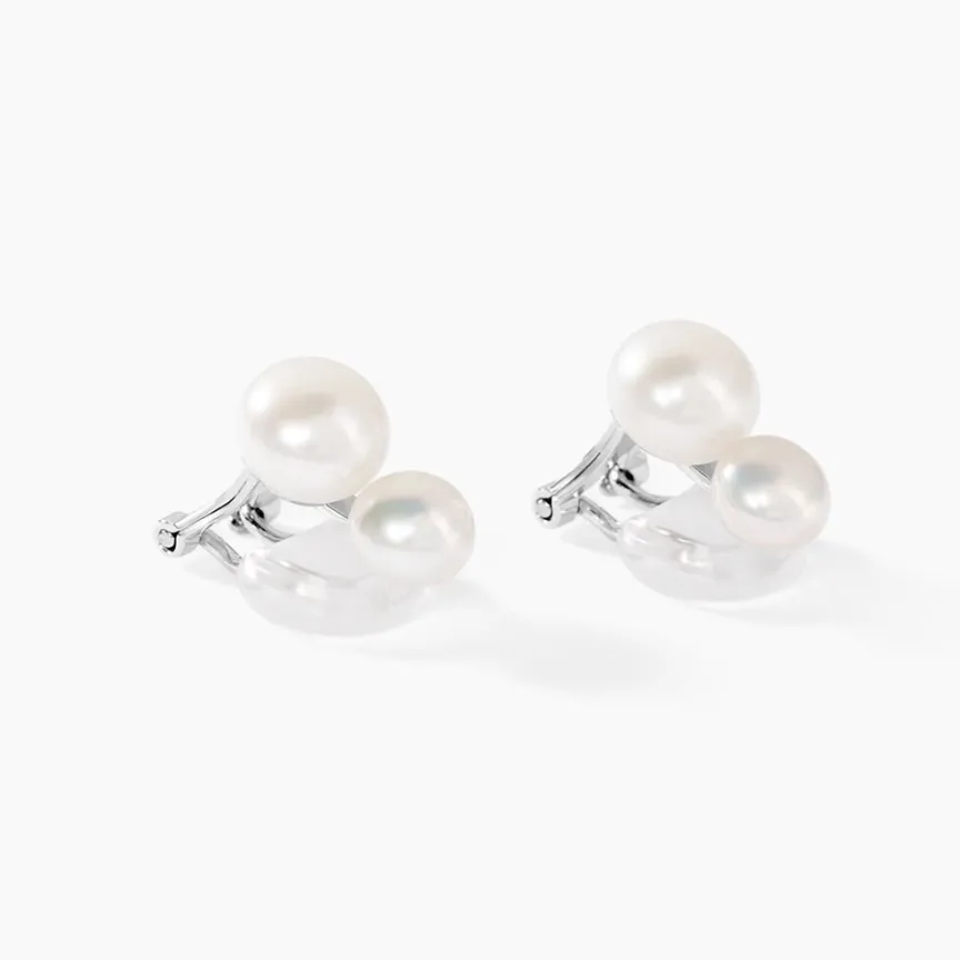 Boucles D’oreilles Clips Argent Blanc 925/1000 Perles De Culture 8-8.5 / 6-6.5mm Oxydes De Zirconium