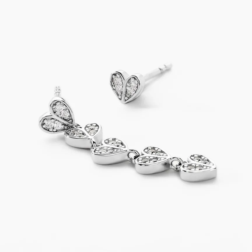 Boucles D’oreilles Dépareillées Argent Blanc 925/1000 C艙urs Oxydes De Zirconium