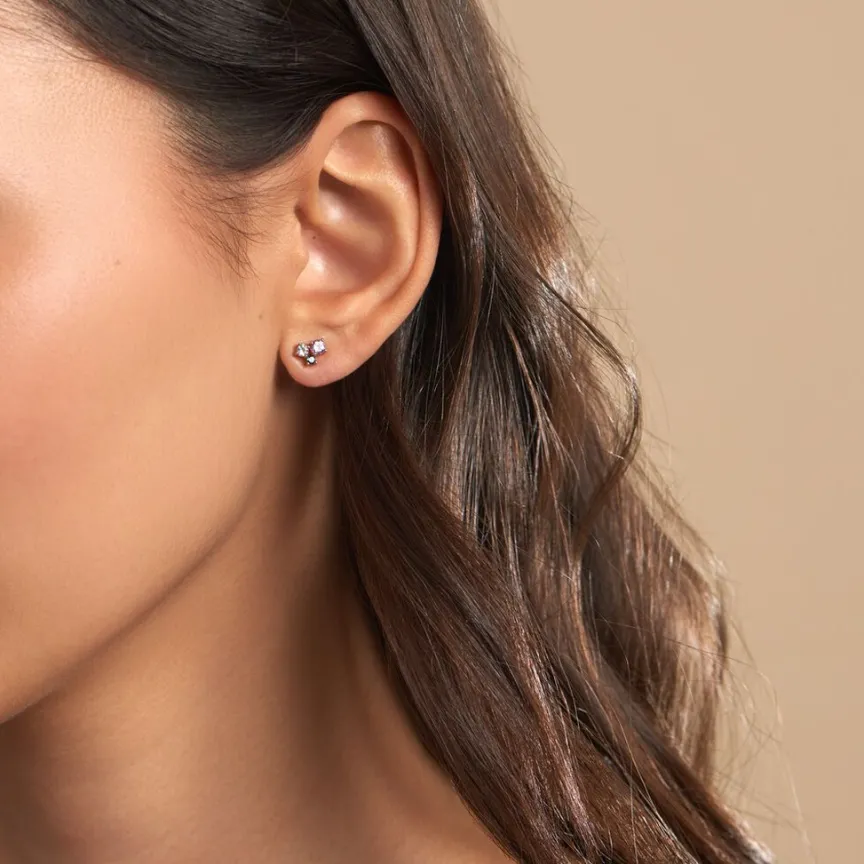 Boucles D’oreilles Depareillees Or Jaune 375/1000 Mutlipierre Amethyste Topaze Et Oxyde De Zirconium Serti Griffes