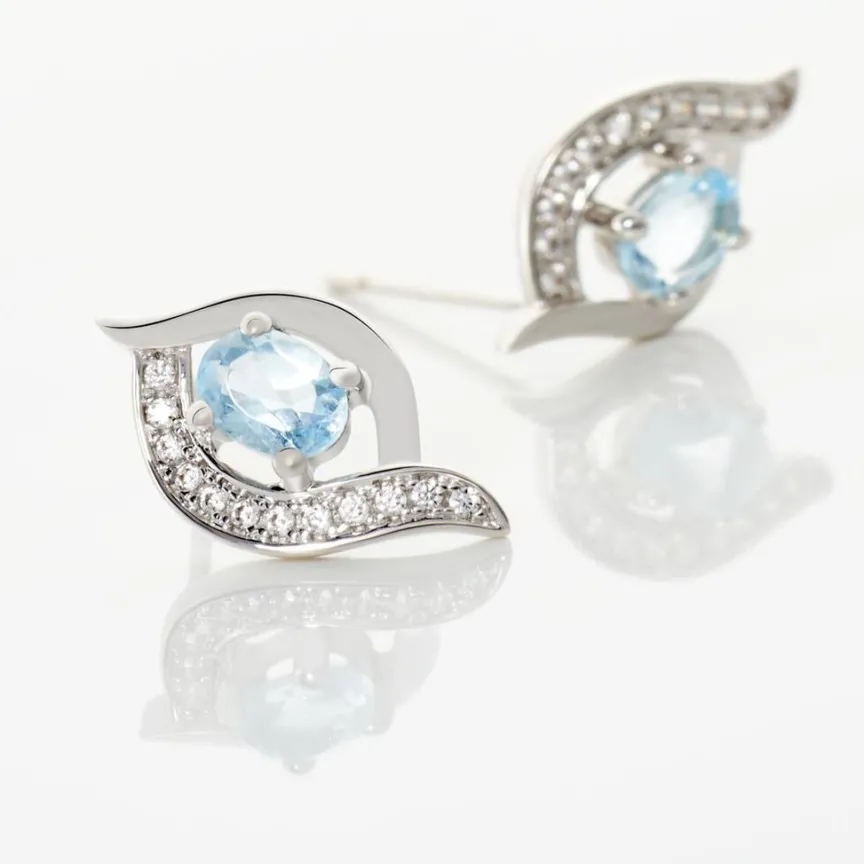 Boucles D’oreilles Puces Or Blanc 375/1000 Formes Vrillées Topazes Et Oxydes De Zirconium