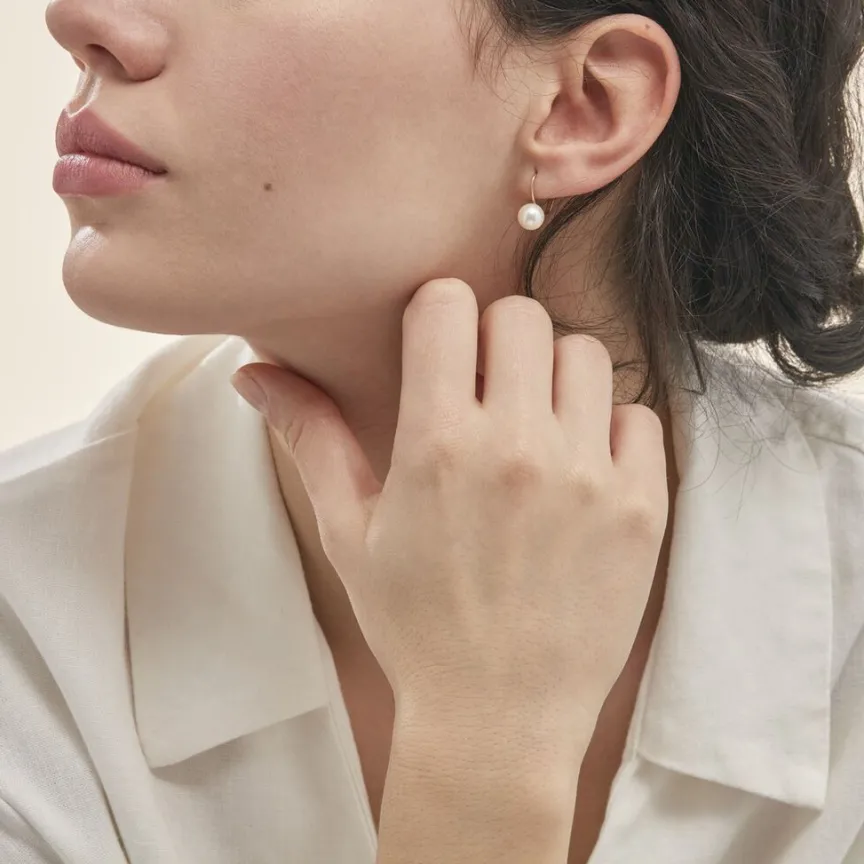 Boucles D’oreilles Or Jaune 375/1000 Dormeuse Perles De Culture Akoya 7/7.5mm Rondes