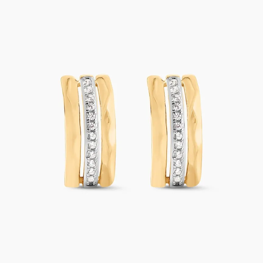 Boucles D’oreilles Or Jaune 375/1000 Effet Facette + Pavage Oxydes De Zirconium