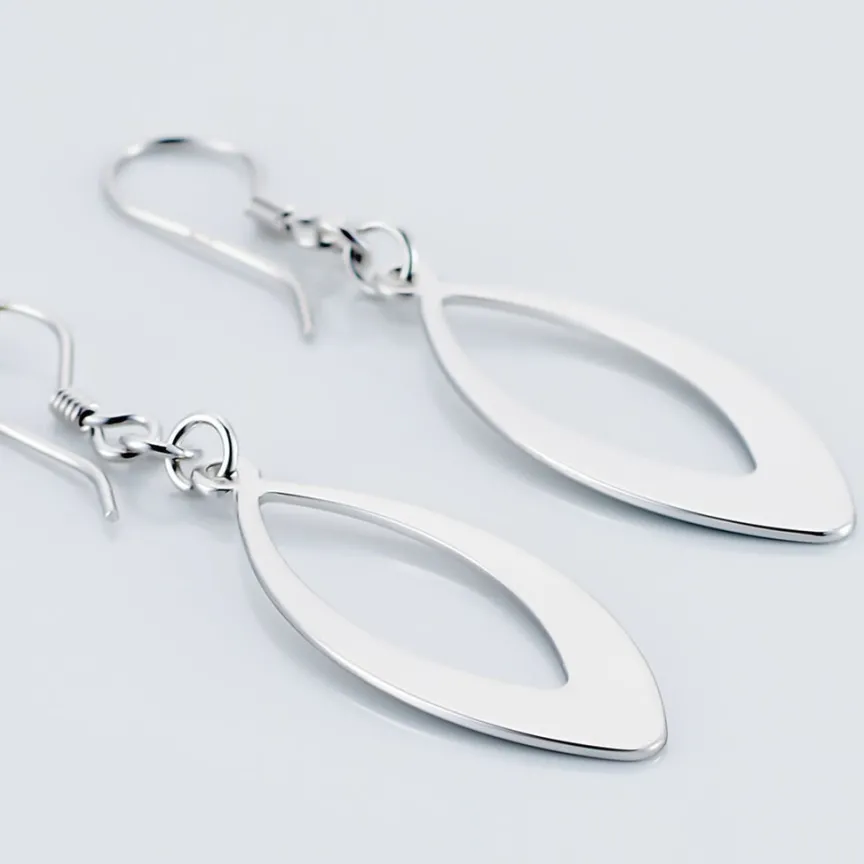 Boucles D’oreilles Pendantes Argent Blanc 925/1000 Gouttes Ajourees