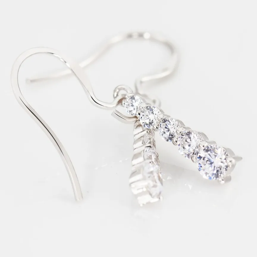 Boucles D’oreilles Pendantes Argent Blanc 925/1000 Petites Rivieres Decroissantes Oxydes De Zirconium
