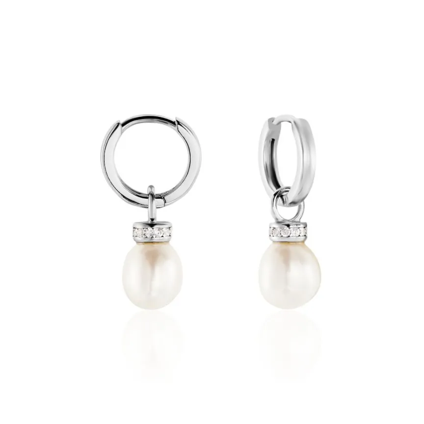 Boucles D’oreilles Pendantes Argent Blanc 925/1000 Perles De Culture Pendantes 8-8.5mm Diametre 15mm