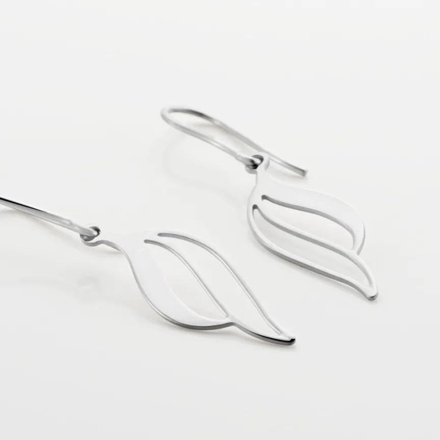 Boucles D’oreilles Pendantes Argent Blanc 925/1000 Vagues Ajourees