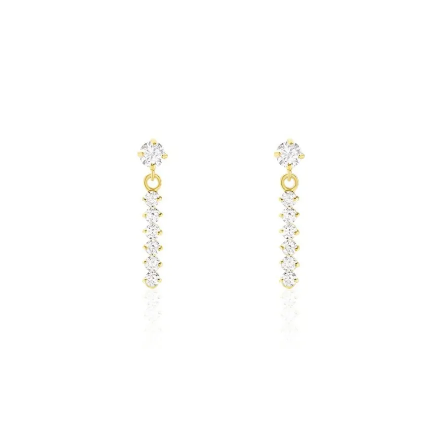 Boucles D’oreilles Pendantes Or Jaune 375/1000 Barrettes Oxydes De Zirconium Serti Griffes