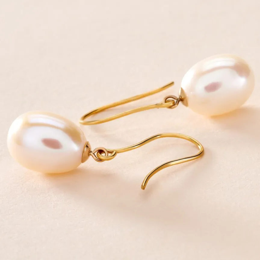 Boucles D’oreilles Pendantes Or Jaune 375/1000 Perles De Culture Baroques Nacre 8/8.5mm
