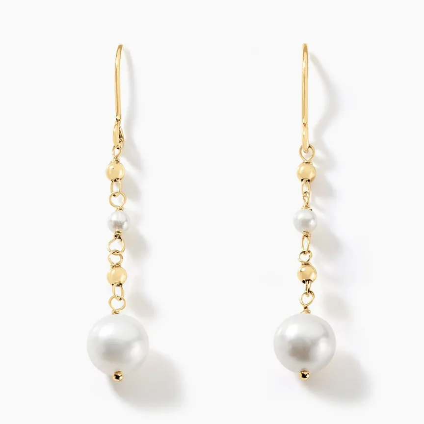 Boucles D’oreilles Pendantes Or Jaune 375/1000 Perle De Culture Blanche Ronde 6/6.5mm