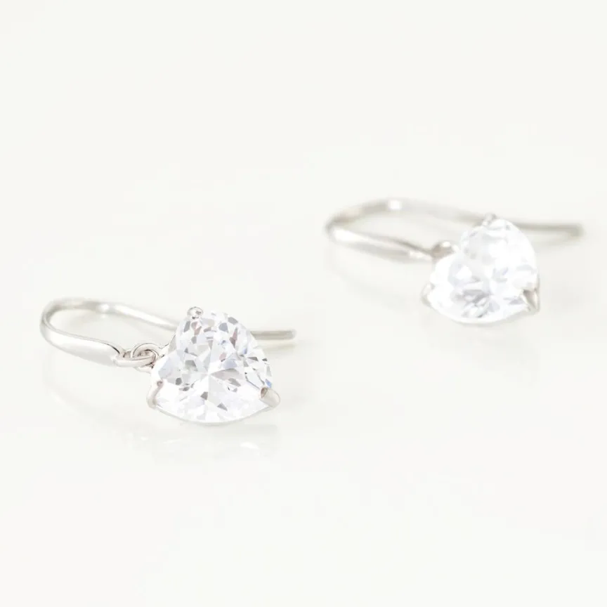 Boucles D’oreilles Or Blanc 375/1000 Oxyde De Zirconium Forme C艙ur Pm