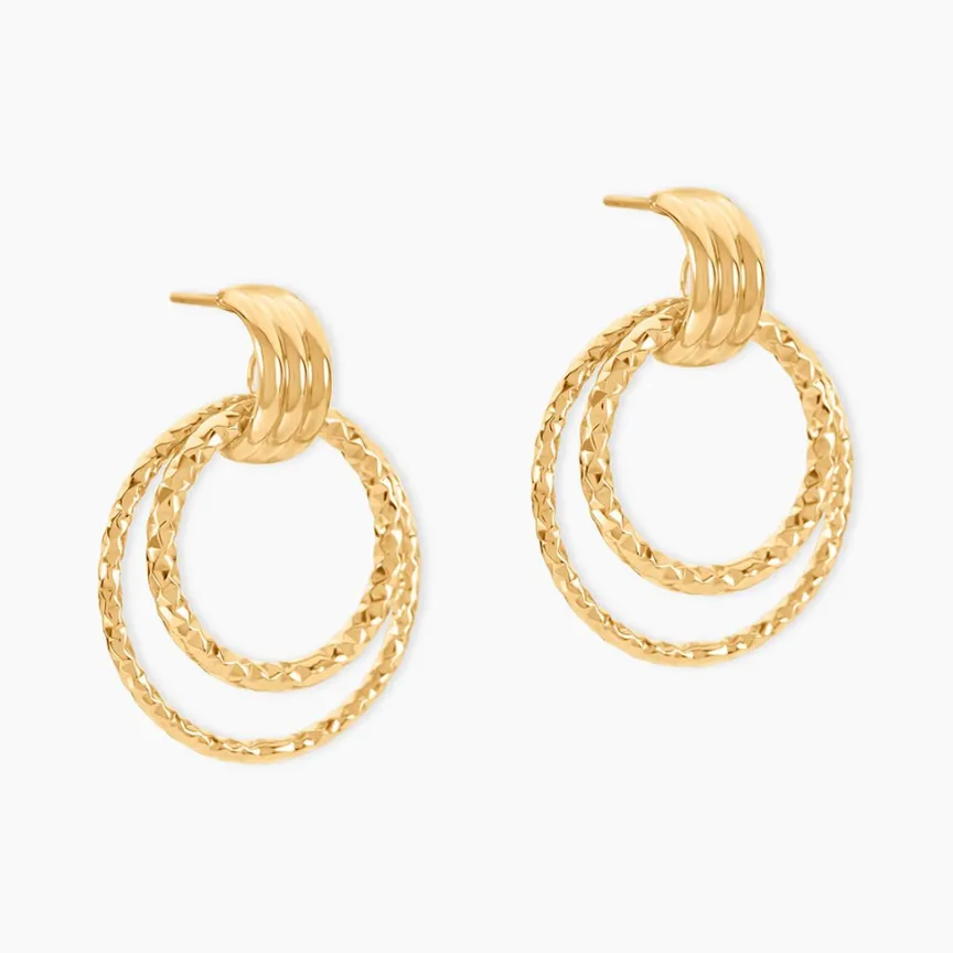 Boucles D’Oreilles Pendantes Or Jaune 375/1000 Cercles Entrelaces Longueur 3Cm