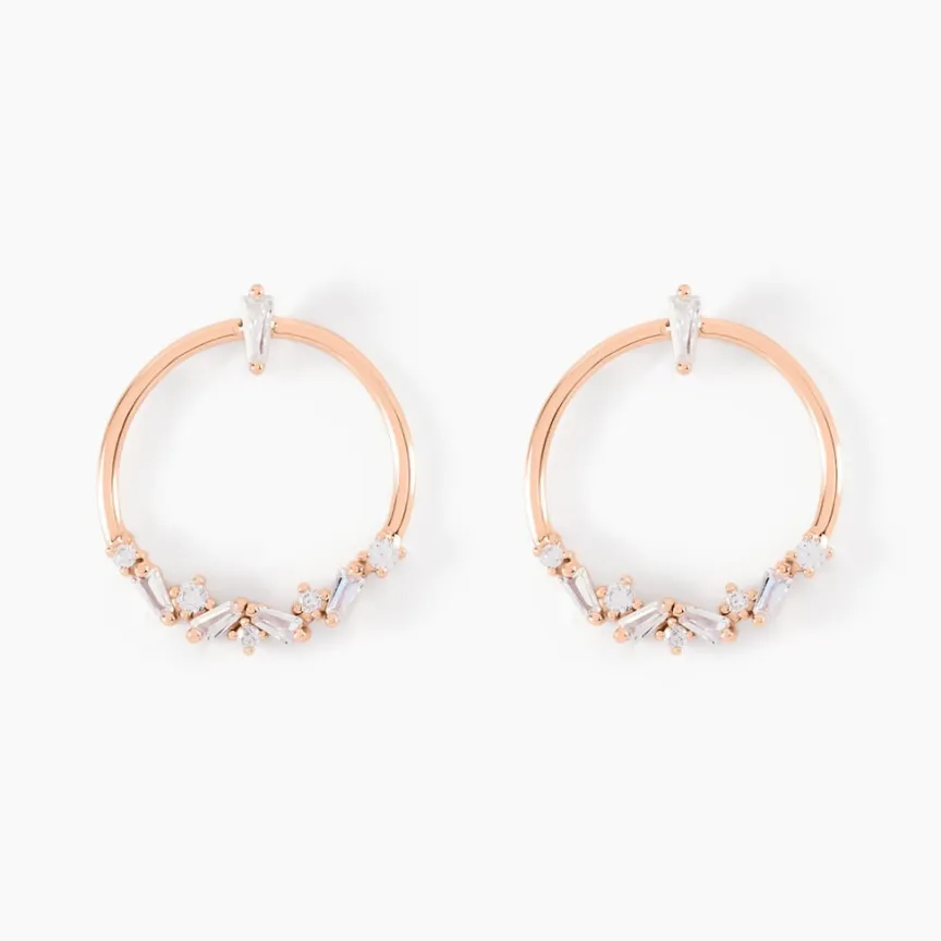 Boucles D’oreilles Argent Rose 925/1000 Formes Cercles Bordures Navettes Cristaux Sertis Griffes Oxydes De Zirconium