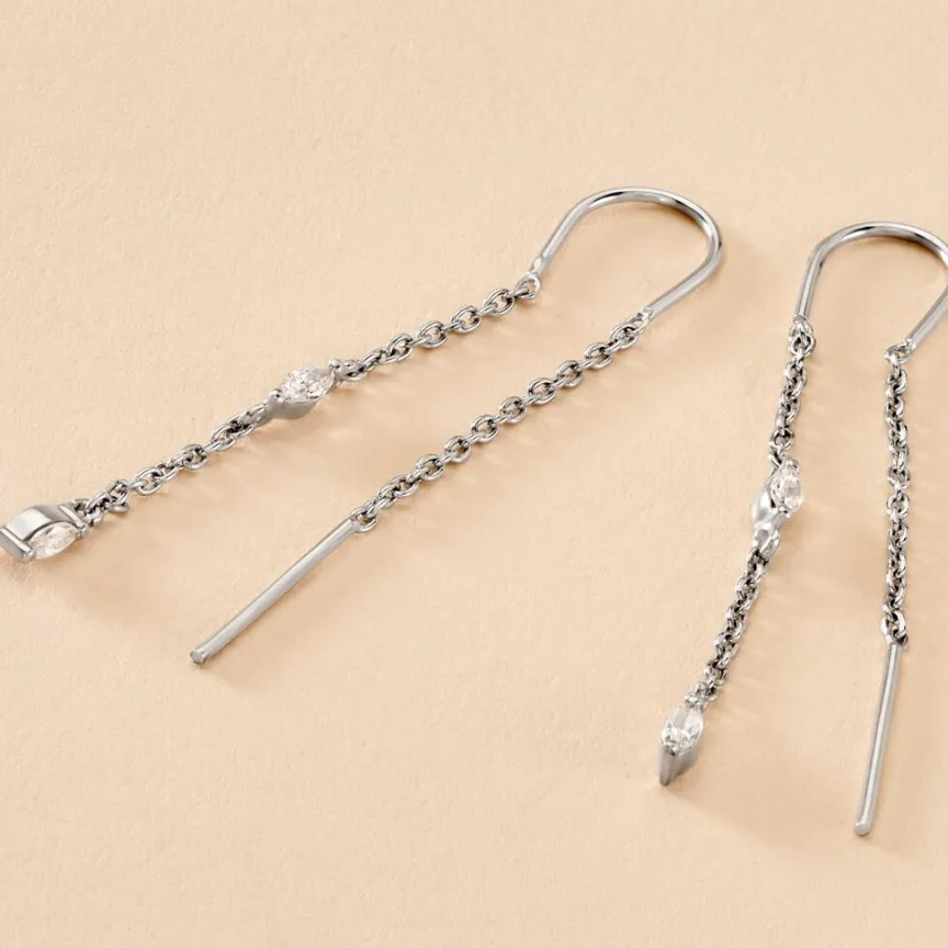 Boucles D’oreilles Pendantes Argent Rhodié 925/1000 Oxydes De Zirconium