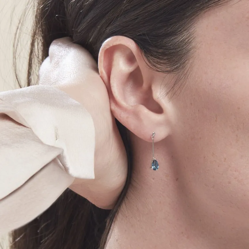 Boucles D’oreilles Pendantes Or Blanc 375/1000 Topaze London Blue Serti Griffes 1ct