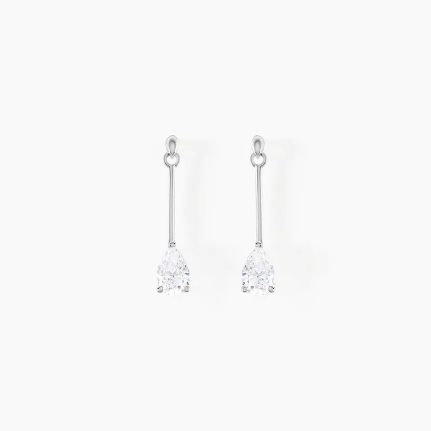 Boucles D’oreilles Or Blanc 375/1000 Pendantes Oxydes De Zirconium Poires