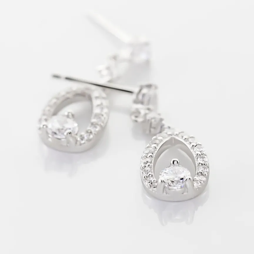 Boucles D’oreilles Argent Blanc 925/1000 Gouttes Creuses + Oxydes De Zirconium