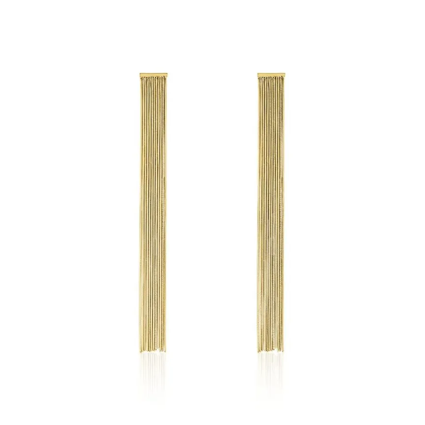 Boucles D’oreilles Pendantes Acier Doré Franges Longues 12cm