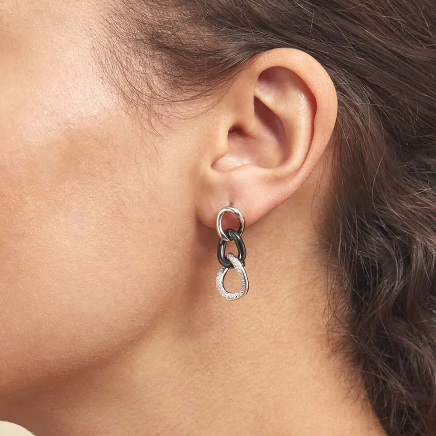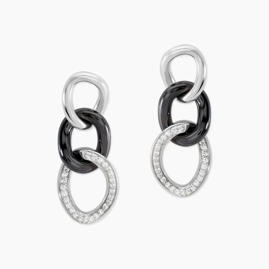 Boucles D’oreilles Argent Blanc 925/1000 Ceramiques Noires Et Oxydes De Zirconium