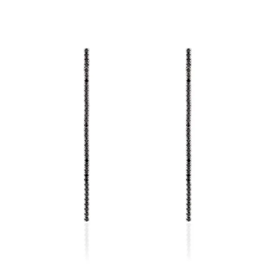 Boucles D’oreilles Pendantes Argent 925/1000 Rivière Oxydes De Zirconium Noirs Serti 4 Griffes Maille Tennis 6cm