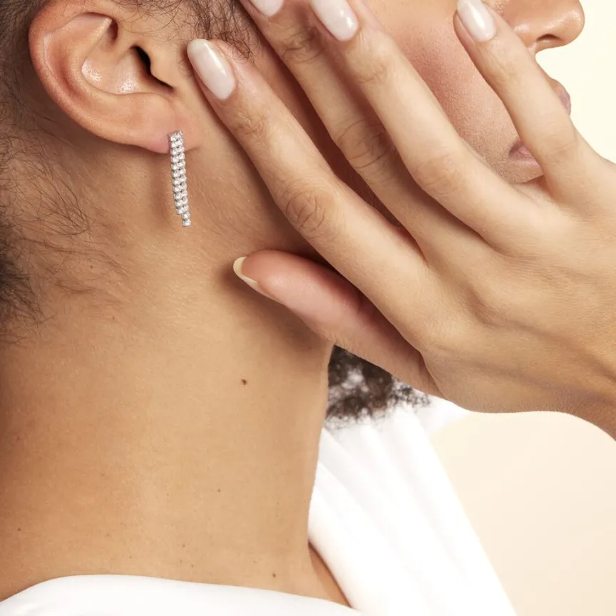 Boucles D’oreilles Argent Blanc 925/1000 Double Rivieres Oxydes De Zirconium