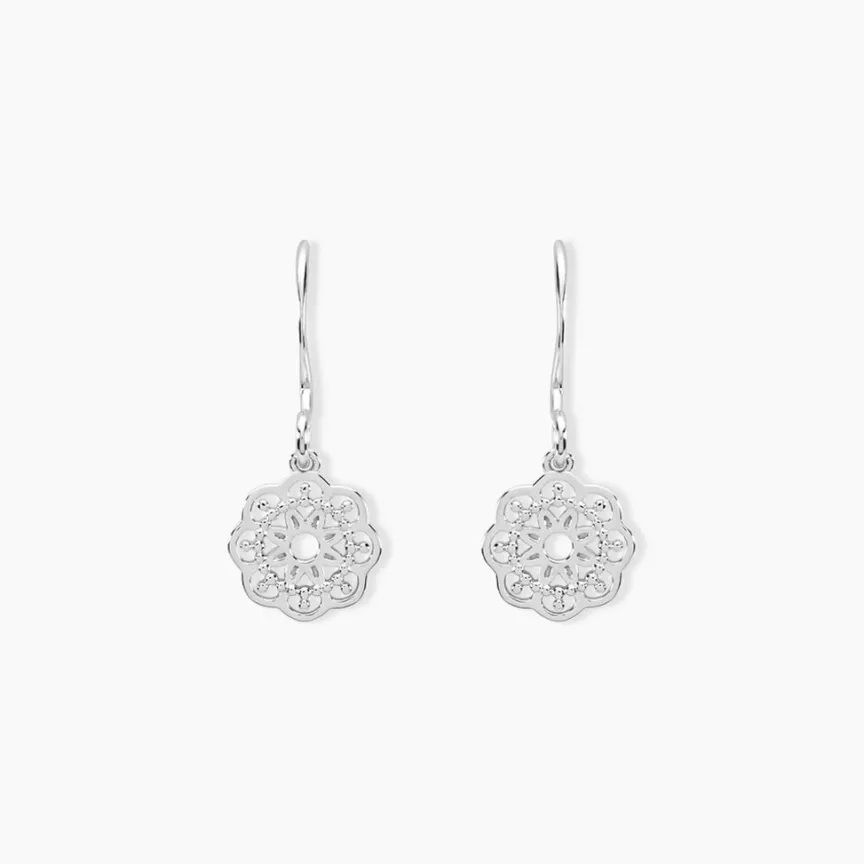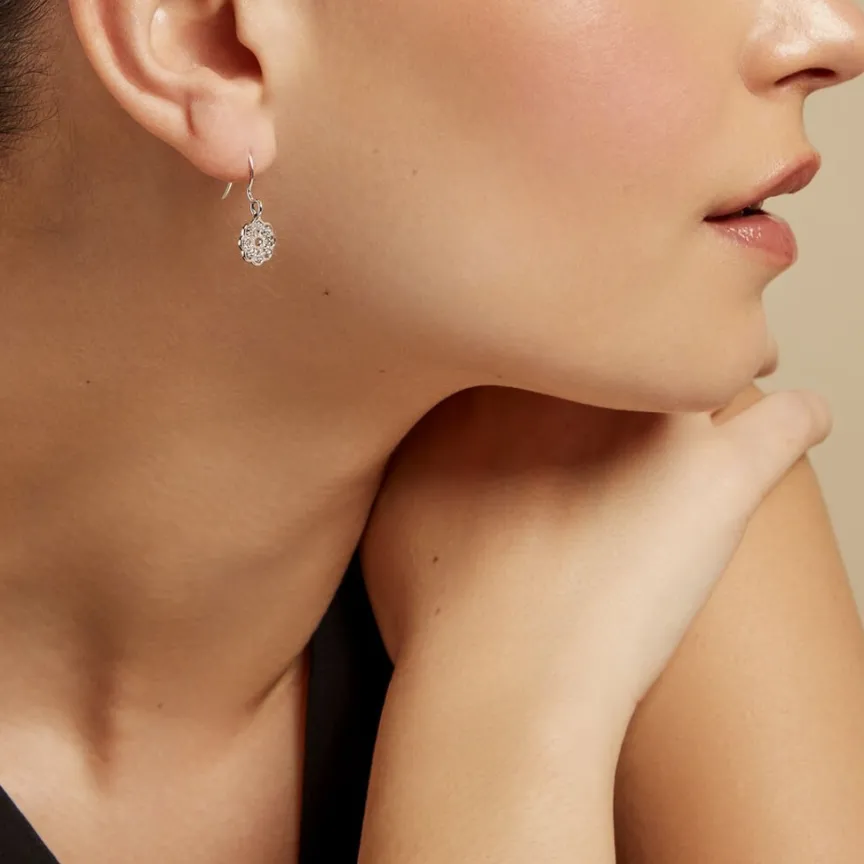 Boucles D’oreilles Pendantes Argent Blanc 925/1000 Rosaces Fleurs Diamètre 4mm