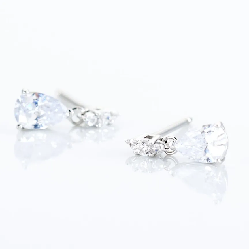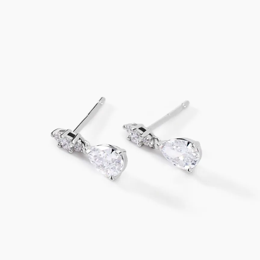 Boucles D’oreilles Argent Blanc 925/1000 Oxydes De Zirconium Forme Goutte
