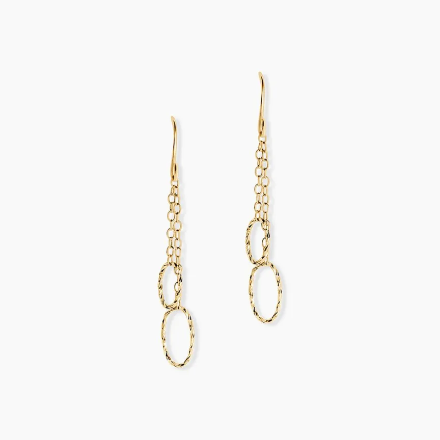 Boucles D’Oreilles Pendantes Or Jaune 375/1000 Ovales Torsadees Ajourees Avec Chaine Forcat