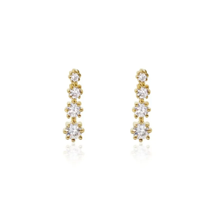 Boucles D’oreilles Pendantes Plaque Or Jaune Rivieres Serties Griffes Oxydes De Zirconium