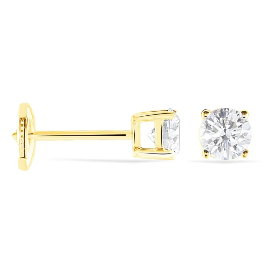 Boucles D’oreilles Or Jaune 750/1000 Puces Diamants Synthetique 0.80cts Sertis 4 Griffes Systemes Alpas