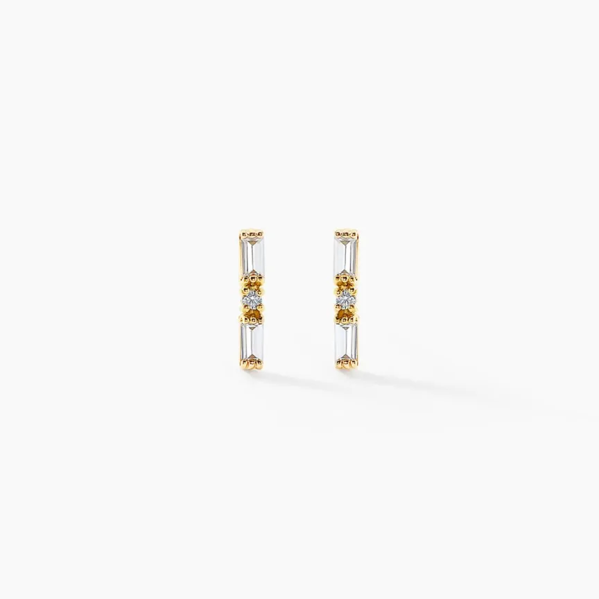Boucles D’oreilles Puces Or Jaune Barres Oxydes Zirconium Baguettes Sertis Griffes