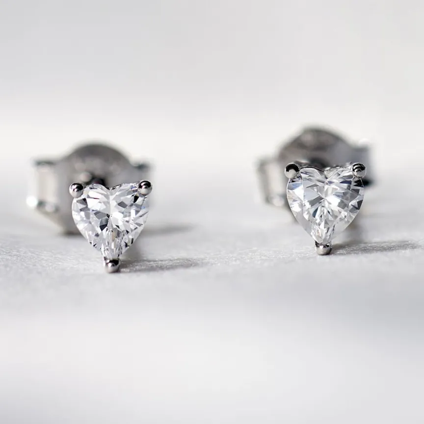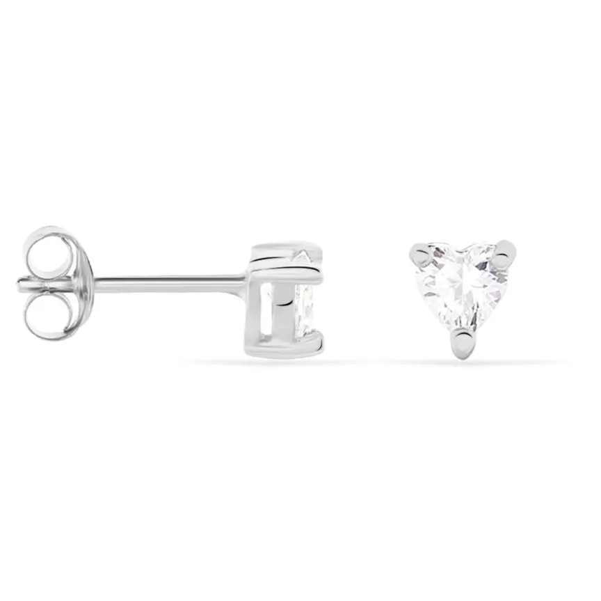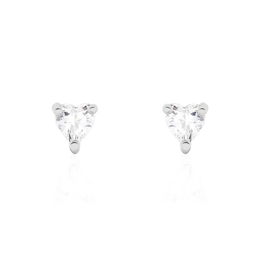 Boucles D’oreilles Puces Argent Blanc 925/1000 Coeurs Oxydes De Zirconium