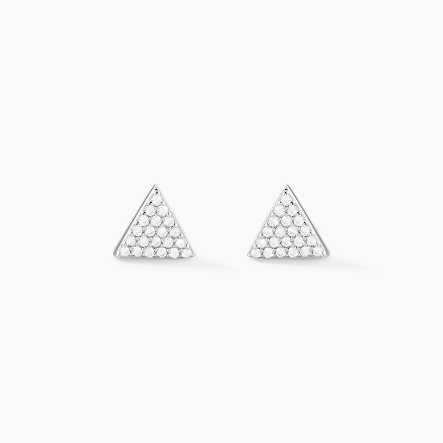 Boucles D’oreilles Argent Blanc 925/1000 Triangles Pavages Oxydes De Zirconium