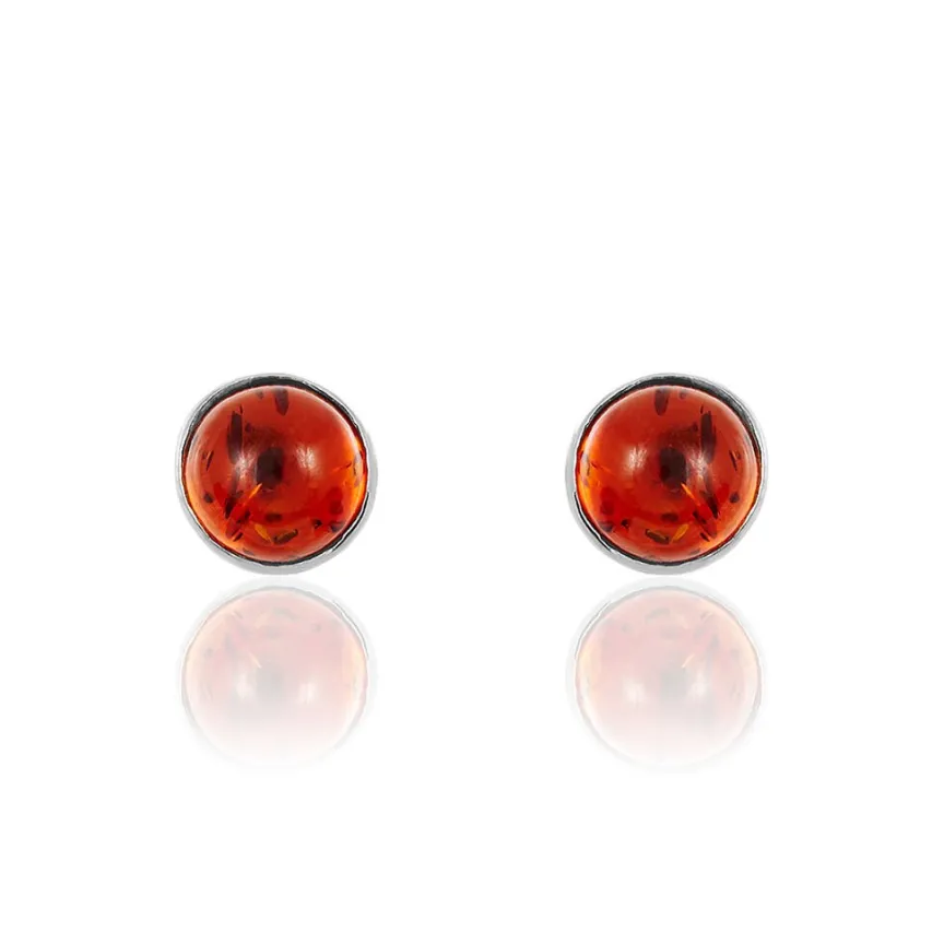 Boucles D’oreilles Puces Argent Blanc 925/1000 Ambres Cognac Diametre 6mm