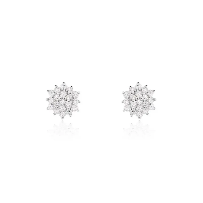 Boucles D’oreilles Puces Or Jaune 375/1000 Choux Diamants 0.28cts Serti Griffes