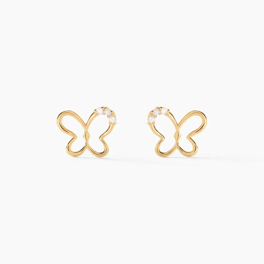 Boucles D’oreilles Or Jaune 375/1000 Puces Papillons Oxyde De Zirconium