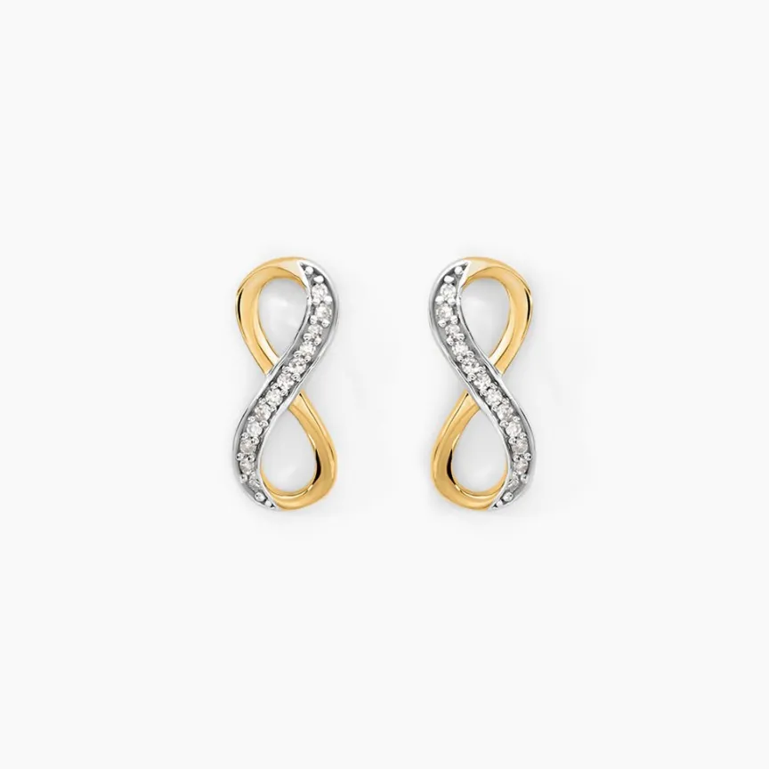 Boucles D’oreilles Puces Or Jaune 375/1000 Forme Infini Avec Pavage Diamants