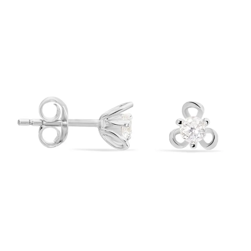 Boucles D’oreilles Puces Argent Blanc 925/1000 Formes Fleurs Oxydes De Zirconium