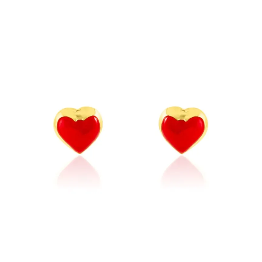 Boucles D’oreilles Or Jaune 375/1000 C艙urs Smalto Rouge