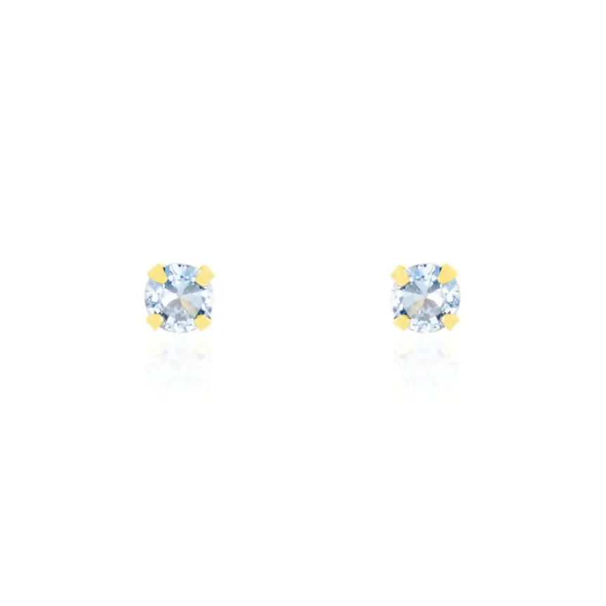 Boucles D’oreilles Or Jaune 375/1000 Puces Oxyde De Zirconium Bleu Clair 3mm