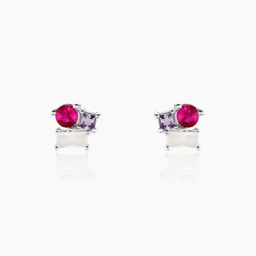 Boucles D’oreilles Puces Multipierres Argent Blanc 925/1000 Spinelles Oxydes De Zirconium Et Verre